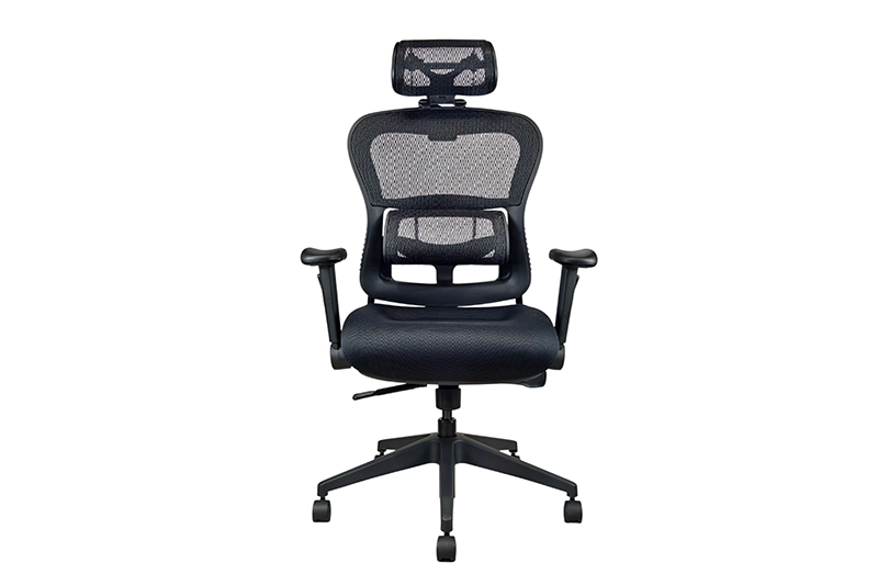 PUシートフォームデザインのメッシュバック、椅子シート、椅子背もたれ、ヘッドレスト、アームレスト、ランバーサポートに複数の調整可能な機能を備えた人間工学に基づいたオフィスチェア。