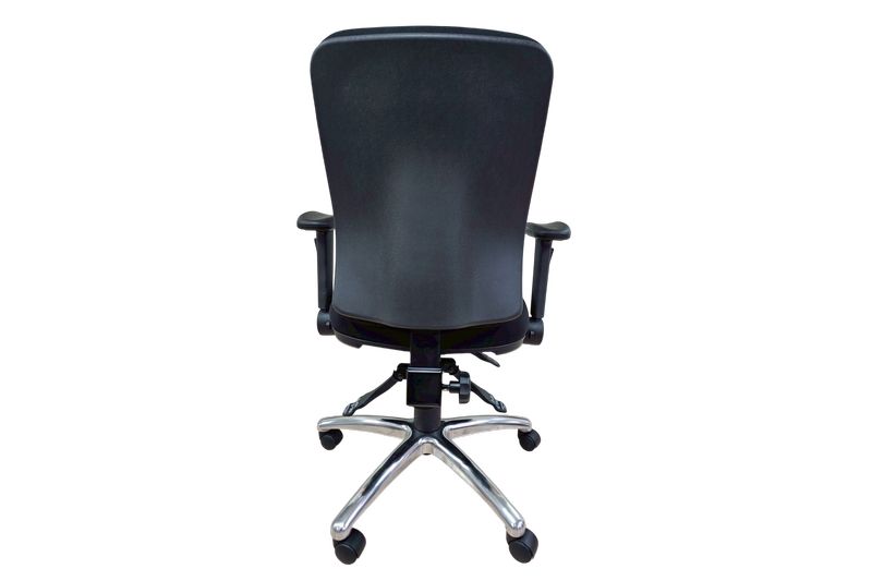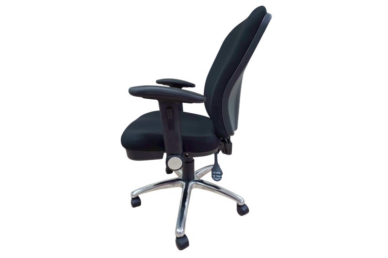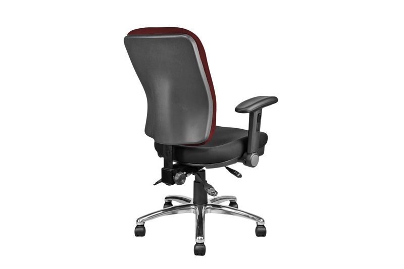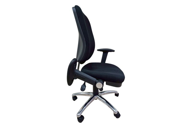 座背分離式中型布料包覆辦公用椅, 座背皆為高密度泡棉包覆環保布料, 可依使用者需求做椅背高度調整, 多功能底盤具有獨立控制拉柄可操控坐傾仰, 背傾仰, 及座椅高度調整