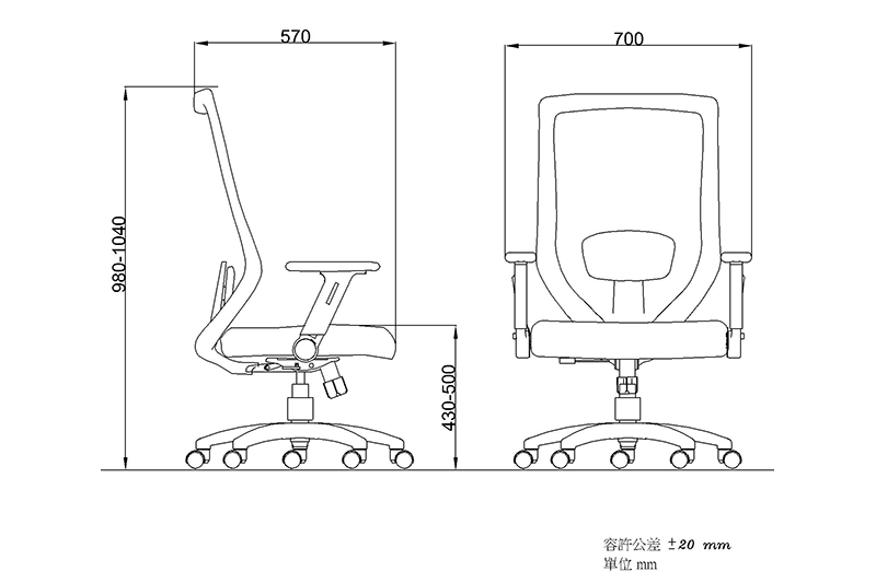 *同步傾仰底盤, 可做傾仰及一段(原始)角度鎖定, 傾仰鬆緊度調整, 及座椅高度調整