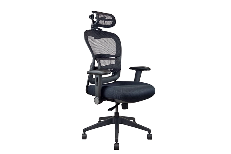 PUシートフォームデザインのメッシュバック、椅子シート、椅子背もたれ、ヘッドレスト、アームレスト、ランバーサポートに複数の調整可能な機能を備えた人間工学に基づいたオフィスチェア。