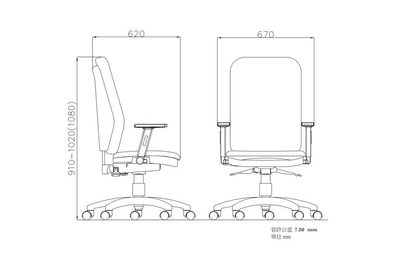 Overall size : W 67 * D 62 * H 91-102 (108 for back height adjustment) cm