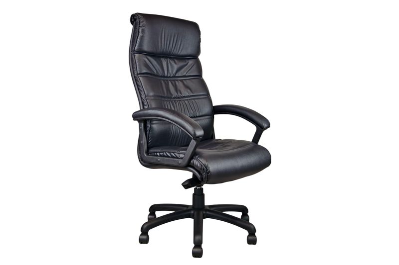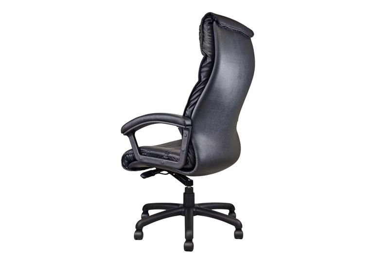 This high-back office chair is upholstered in synthetic leather with delicate stitching for a touch of elegance.
