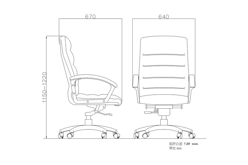 *Fixed armrest with same material leather upholstered armrest pad