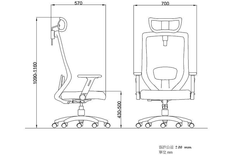 *Mesh back design with height adjustable mesh headrest. High density PU mold seat foam