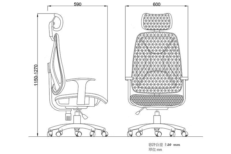 *Height adjustable mesh headrest