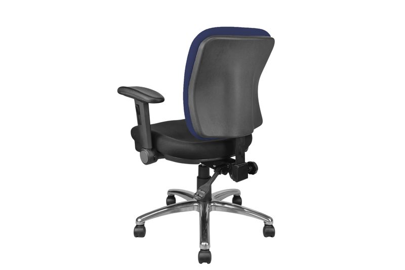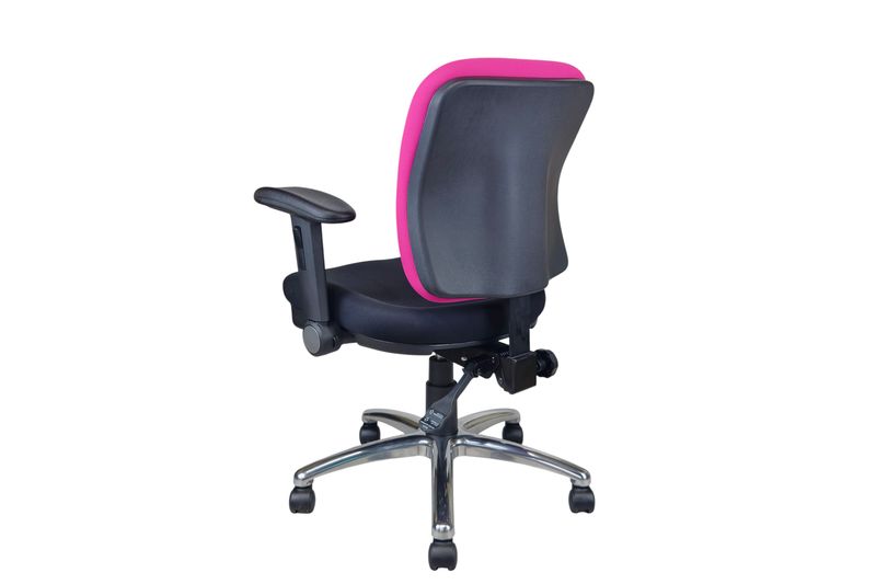 座背分離式中型布料包覆辦公用椅, 座背皆為高密度泡棉包覆環保布料, 可依使用者需求做椅背高度調整, 多功能底盤具有獨立控制拉柄可操控坐傾仰, 背傾仰, 及座椅高度調整